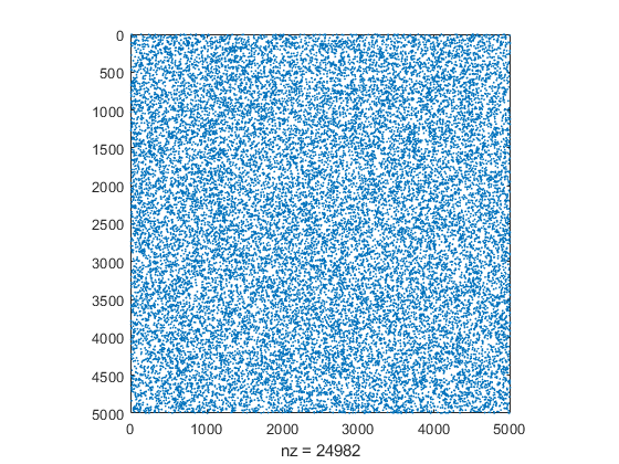 n = 5000; A = sprand(n,n,0.001); close spy(A)